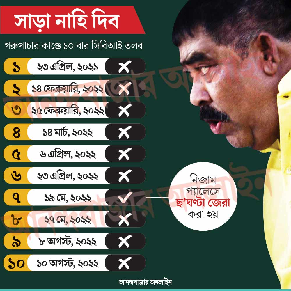 গরুপাচার মামলায় ১০ বার ডেকেছে সিবিআই! তিনি হাজিরা দিয়েছেন মাত্র এক বার! ‘বাড়াবাড়ি’ করে ফেলে এ বার কি আতঙ্কে ভুগছেন বীরভূমের তৃণমূল সভাপতি অনুব্রত মণ্ডল। গ্রেফতারের আশঙ্কা করছেন? ‘কেষ্ট’র মনের অবস্থা সরাসরি জানা না গেলেও, তাঁর ঘনিষ্ঠ বা অনুগামীরা অবশ্য প্রকাশ্যেই আশঙ্কা প্রকাশ করছেন। এক ঘনিষ্ঠ বলেই ফেললেন, “এর আগেও অসুস্থতার জন্য কেষ্টদা সিবিআই সমন এড়িয়ে গিয়েছেন। মাত্র এক বার হাজিরা দিয়েছেন। এ বার সিবিআই কোনও কঠোর পদক্ষেপ নেবে না তো? ভয় হয়!”
