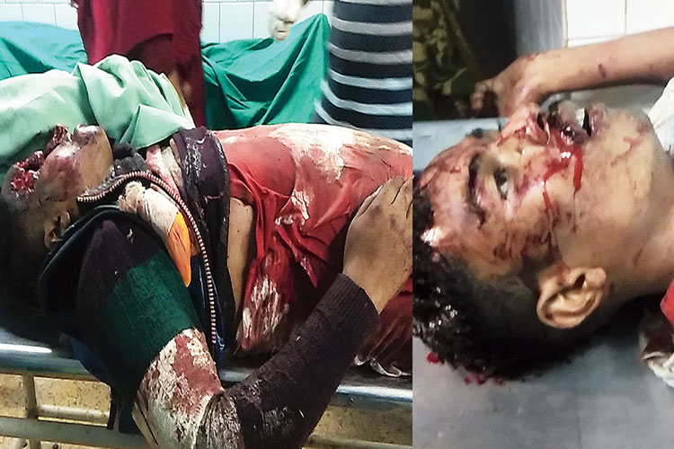 নিহত তৃণমূল নেতা সারফুদ্দিন খান (নীচে বাঁ দিকে) এবং চালক মনিরুদ্দিন ওরফে সেলিম খান ওরফে বাবু। ছবি: সুমন সাহা