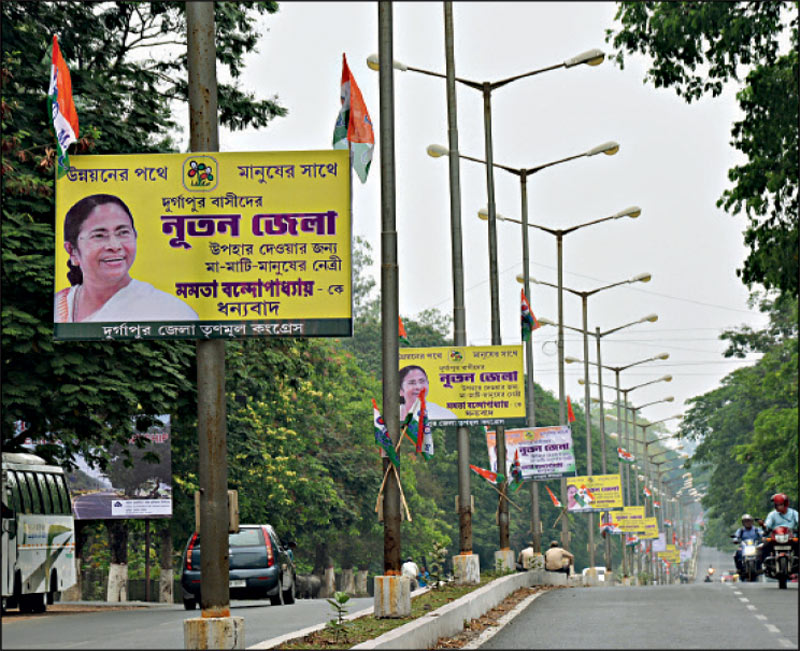 প্রস্তুত: নতুন জেলার জন্য। দুর্গাপুরের গাঁধী রোডে। ছবি: বিকাশ মশান