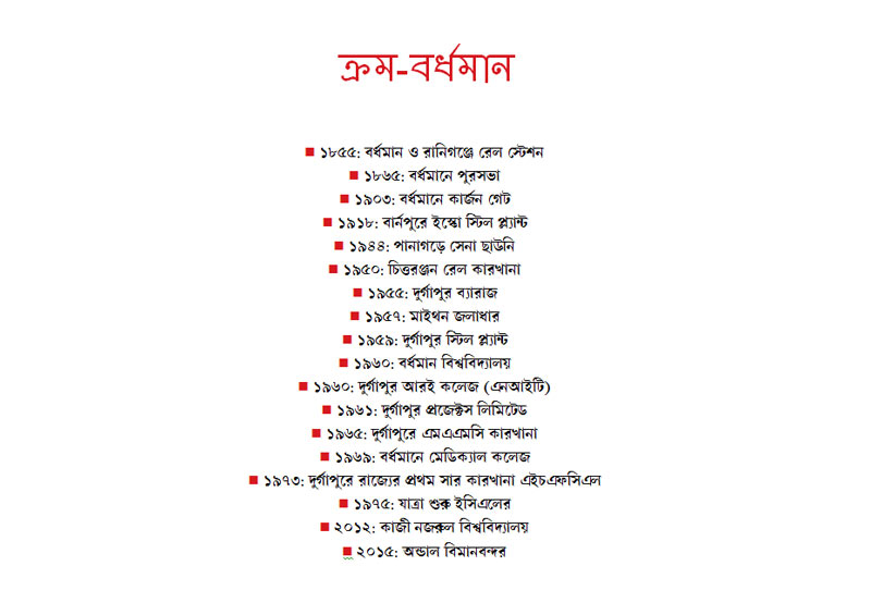 বর্ধমান জেলা ভাগ হবে— পুবে, পশ্চিমে। তাতে প্রশাসনিক সুবিধা হবে, উন্নয়নও ঘটবে, এমন কথা শোনা যাচ্ছে। ফলে পুরনো বর্ধমানের নানা ইতিহাসের কথা মনে পড়ে যাবে। আধুনিকতম হওয়ার আগে আধুনিকতার অবস্থাটা পর্যালোচনা করাও যেতে পারে এই সুযোগে।
