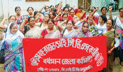 সরকারি কর্মীর স্বীকৃতি দান, পরিকাঠামো উন্নয়ন-সহ নানা দাবিতে শুক্রবার বর্ধমানে জেলাশাসকের দফতরে বিক্ষোভ দেখালেন অঙ্গনওয়াড়ি কর্মীরা। পশ্চিমবঙ্গ আইসিডিএস কর্মী সমিতির জেলা সম্পাদক মনীষা চক্রবর্তীর শিশু বিকাশ প্রকল্পের আধিকারিক অনুপম দত্তর হাতে একটি দাবিপত্রও দেওয়া হয়।