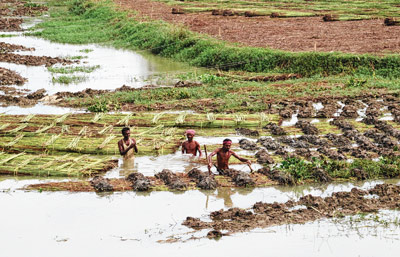চলছে পাট পচানোর কাজ। কালনার ওমরপুরে তোলা নিজস্ব চিত্র।