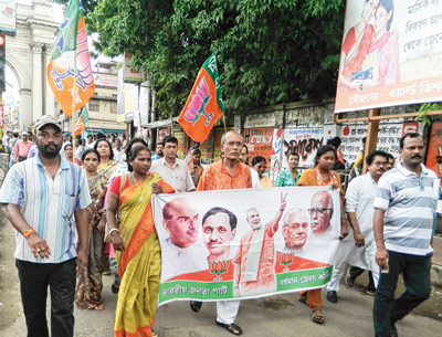 কর্মীদের উপর হামলার প্রতিবাদে বিজেপির মিছিল।