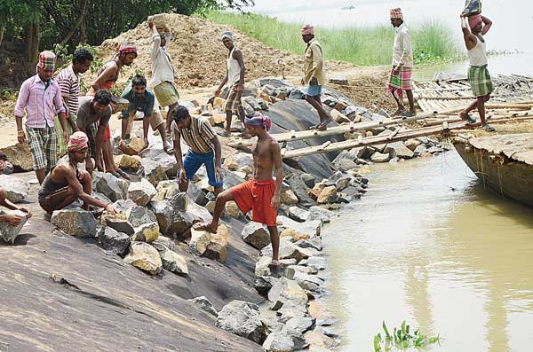 গ্রামবাসী যাদবচন্দ্র দে, প্রতিমা চৌধুরী, উত্তম কৈবর্তেরা জানান, বর্ষায় ভাগীরথী এখানে ভয়ঙ্কর রূপ নেয়। তাঁদের বক্তব্য, ‘‘এই সময়ে এখানে নির্মাণকাজ কী ভাবে হবে, জানি না! প্রবল স্রোতে নির্মাণের জিনিসপত্র সব নদীতে চলে যাবে বলে ভয় হচ্ছে আমাদের। সেক্ষেত্রে মেরামতির কাজ অসম্পূর্ণই রয়ে যাবে।’’ কাটোয়ার মহকুমাশাসক মৃদুল হালদার বলেন, ‘‘১২৫০ মিটারের কাজে প্রায় তিন কোটি টাকা বরাদ্দ হয়েছে। ওই এলাকায় ভাঙনের প্রবণতা বেশি। দাঁইহাট শহরও রয়েছে। সে কারণে তড়িঘড়ি কাজ করতে চাইছে সেচ দফতর।’’