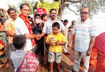বুধবার সকাল ৮টা নাগাদ গলায় দলের উত্তরীয় জড়িয়ে একে একে ঘাটে হাজির হন ১৮টি ওয়ার্ডের প্রার্থীরা। সঙ্গে পতাকা, ফেস্টুন, দলীয় পতাকা নিয়ে ছিলেন কর্মী-সমর্থকেরাও। স্নান সেরে উঠে আসা ভোটারদের প্রথমে নববর্ষের শুভেচ্ছা জানান তাঁরা। তারপর দু’চার মিনিট হাল হকিকত জিজ্ঞেস করেই তাঁদের হাতে ধরিয়ে দেন একটি করে ছাপানো লিফলেট। যাতে লেখা রয়েছে, কেন বামপন্থীদের ভোট দেবেন। সাতসকালে ভিজে গায়ে প্রার্থীদের এভাবে দেখে মানুষজন প্রথমে কিছুটা হকচকিয়ে গেলেও পরে ভালই সাড়া দেন। মহিষমর্দিনী ঘাটে স্নান করতে এসেছিলেন স্থানীয় গনেশ অধিকারী। তিনি বলেন, ‘‘প্রতিবারই এই দিনে স্নান করতে আসি। এ বারই প্রথম দেখলাম ঘাটের কাছে এসে একটি রাজনৈতিক দল ভোট প্রচারে নেমেছে। বিষয়টির মধ্যে অভিনবত্ব রয়েছে।’’ সিপিএম নেতাদেরও দাবি, গতানুগতিক প্রচারের ধরণ থেকে বেরিয়ে মানুষের সঙ্গে সংযোগ করায় ভাল সাড়া মিলছে।