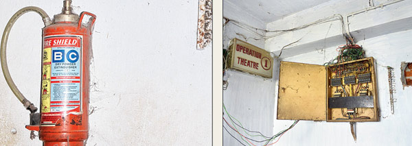 কোথাও অরক্ষিত অবস্থায় ঝুলে রয়েছে বিদ্যুতের তার। কোথাও আবার মান্ধাতা আমলের স্যুইচ বোর্ডেই চলছে কাজ। শুক্রবার প্রসূতি বিভাগের লেবার রুমের সামনে কন্ট্রোল প্যানেল বাক্স থেকে ধোঁয়া বেরোতে দেখা যায়। কিন্তু তারপর শনিবারেও প্রয়োজনীয় অগ্নি নির্বাপণ ব্যবস্থার বেআব্রু ছবিটা ধরা পড়ল বর্ধমান মেডিক্যাল কলেজ হাসপাতালের। শুধু তাই নয়, খোঁজ নিয়ে জানা গেল অগ্নি নির্বাপণ সংক্রান্ত ছাড়পত্রই নেই হাসপাতালের।