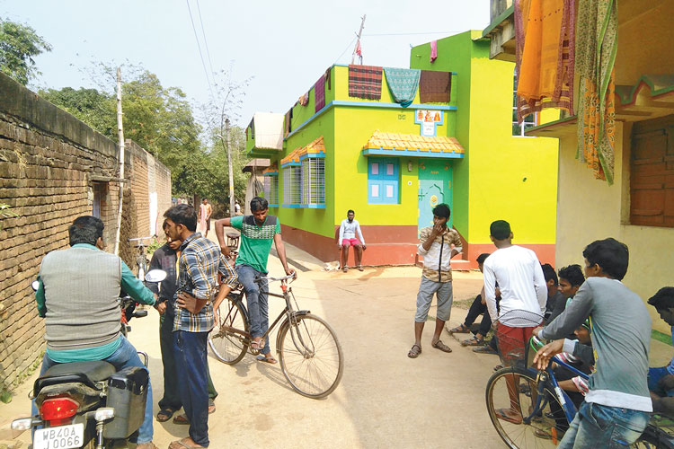 দু’টি রাস্তার একটি গ্রামের ভিতর দিয়ে গিয়েছে। তা দিয়ে খানিক দূর গেলেই সন্দীপের একতলা সবুজ রঙের নতুন বাড়ি। বা়ড়িটা নতুন, কিন্তু এই গ্রামেরই দীর্ঘকালের বাসিন্দা সন্দীপ ও তাঁর পরিবার। পাশের বাড়ির ছেলেটা নেই, এমনটা এখনও ভাবতে পারছেন না শুভজিৎ মণ্ডল, গীতা বাগদিরা। তাঁদের কথায়, ‘‘বড় ভাল ছেলে ছিল সন্দীপ। গ্রামবাসীর যে কোনও সুখ, দুঃখে পাশে থাকত।’’