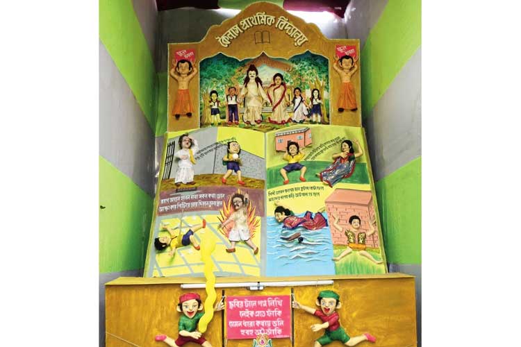 যেমন ভাবা তেমন কাজ। ২০০১ সালে প্রথম আওয়াজ ক্লাবের থাকায় ‘মেঘনাথ বধ’ কাব্যের একটা অংশ তুলে ধরেন নিত্যবাবু। তাঁর ভাবনা অনুয়ায়ী পুতুল তৈরি ও সাজানোর কাজ করেন অমিতবাবু। বছর আটেক আগে প্রতিবাদ ক্লাবের থাকায় ‘গুপী গাইন বাঘা বাইনে’র গল্প বলেন তাঁরা। ওই বছরই কালীগঞ্জের কালীপুজোয় থাকায় ছিল ‘বিক্রম বেতালে’র কাহিনি। বছর দুয়েক আগে প্রতিবাদ ক্লাবের তরফে থাকায় সর্বশিক্ষা অভিযানের ছবি তুলে ধরা হয়। সেখানেও কারিগর ছিলেন এই দু’জন। সুকুমার রায়ের ‘আবোল তাবোলে’র বিভিন্ন ছড়া লিখে ও চরিত্র এঁকে একটি কমিক ‘থাকা’ও তৈরি হয়েছিল। এ ছাড়াও বছর দুয়েক আগে ঝঙ্কার ক্লাবের গোলাকৃতি থাকা, থাকার পিছনে দৃশ্যাঙ্কন ও তুলো দিয়ে পুতুল সাজানোর ভাবনা তাঁরই।