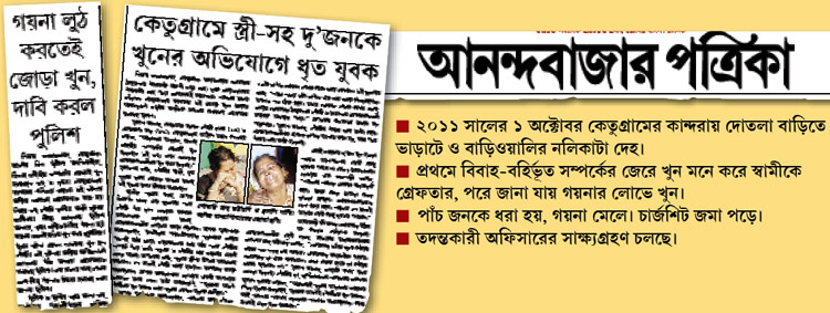 ভাড়াবাড়ির দোতলার ঠাকুরঘরে গলাকাটা তরুণী বধূর দেহ। দোতলারই রান্নাঘরে মিলেছিল বৃদ্ধা বাড়িওয়ালির গলাকাটা দেহ।