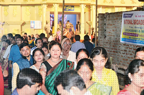 ঠাকুর দেখতে ভিড়। বুধবার তোলা নিজস্ব চিত্র।