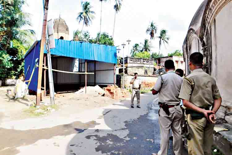 ঘটনাস্থলে তদন্তে পুলিশ। মঙ্গলবার কালনায়। নিজস্ব চিত্র