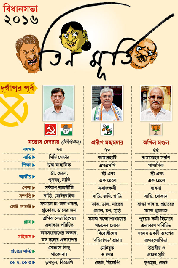 দূর্গাপুর পূর্ব বিধানসভা কেন্দ্রের তিন প্রধান প্রার্থীর সম্পর্কে কিছু তথ্য এক নজরে।দূর্গাপুর পূর্ব বিধানসভা কেন্দ্রের তিন প্রধান প্রার্থীর সম্পর্কে কিছু তথ্য এক নজরে।
