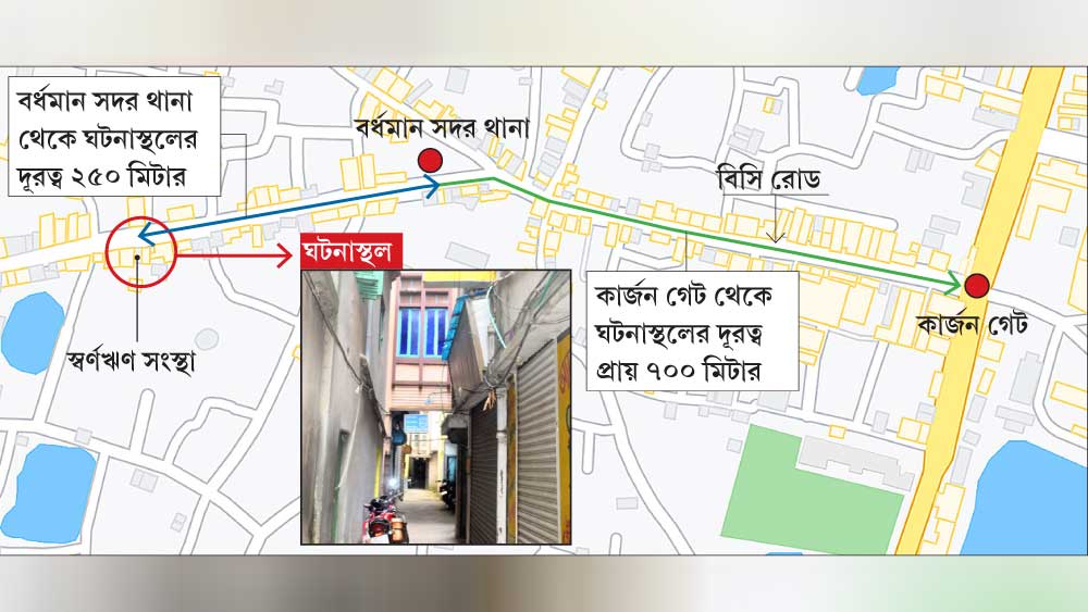 ঘটনাস্থলের কিছু দূরে সোনাপট্টি। সেখানকার একটি ইউনিয়নের নেতা স্বরূপ কোনারের দাবি, ‘‘গত পাঁচ বছর ধরে ক্রমাগত বর্ধমান শহরে সোনার দোকানে লুট হচ্ছে। একটি বড় সংস্থায় দিনদুপরে প্রায় ১৫ কোটি টাকার সোনা লুট হলে, আমাদের ভয় তো করবেই।’’ সাইন শেখ, সৈয়দ সাহাবুদ্দিনদের অভিযোগ, ‘‘জনা তিনেক যুবক চোখের সামনে পিস্তল উঁচিয়ে চলে গেল!’’