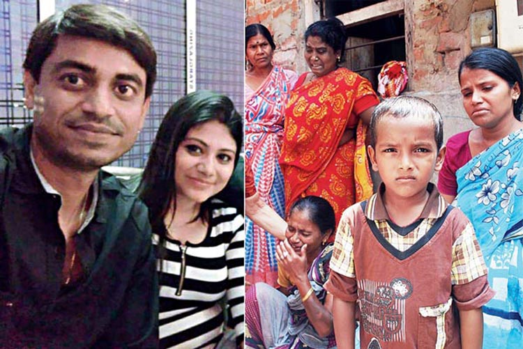 দেবজ্যোতি ও মৈত্রেয়ী। পাশে, লোটনের পরিবার। নিজস্ব চিত্র
