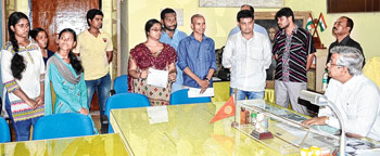 উপাচার্যকে স্মারকলিপি দিচ্ছেন এসএফআইয়ের প্রতিনিধিরা।