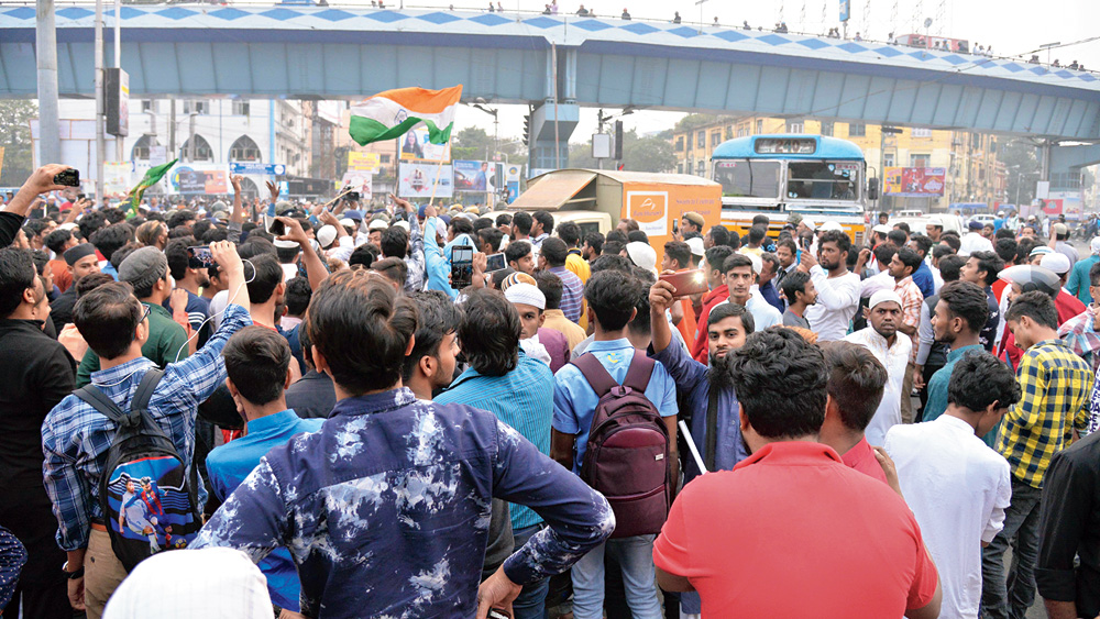 প্রতিবাদ: সংশোধিত নাগরিকত্ব আইনের বিরুদ্ধে বিক্ষোভ পার্ক সার্কাসে। —নিজস্ব চিত্র
