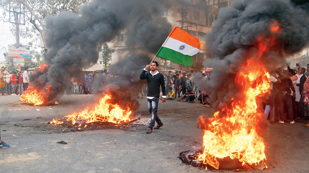 অসম-সহ উত্তর-পূর্বাঞ্চল প্রথম থেকেই উত্তপ্ত। সংশোধিত নাগরিকত্ব আইনের প্রতিবাদে এ বার অশান্তি শুরু হল কলকাতা-সহ পশ্চিমবঙ্গের বিভিন্ন প্রান্তেও। সর্বত্রই জনতার হাতে ছিল জাতীয় পতাকা। শুক্রবার কোথাও কোথাও ওই বিল-বিরোধী আন্দোলন হিংসাত্মক রূপ নেওয়ায় ভোগান্তির মুখে পড়েন অনেকেই।