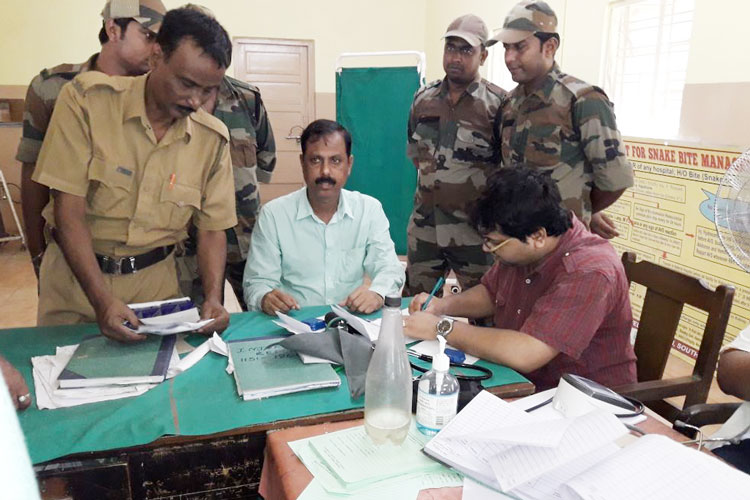 আদালতে নিয়ে যাওয়ার আগে মেডিক্যাল চেকআপ হচ্ছে আরাবুলের। ছবি: শশাঙ্ক মণ্ডল।