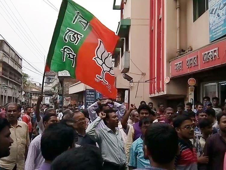 কান্দিতে বিজেপির মিছিল। ছবি: কৌশিক সাহা।