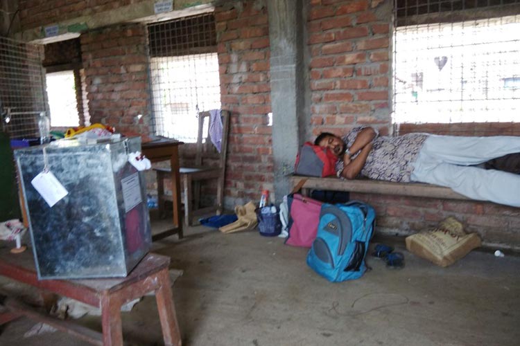 উত্তর গাজিপুরের বুথের মধ্যে অচেতন প্রিসাইডিং অফিসার।