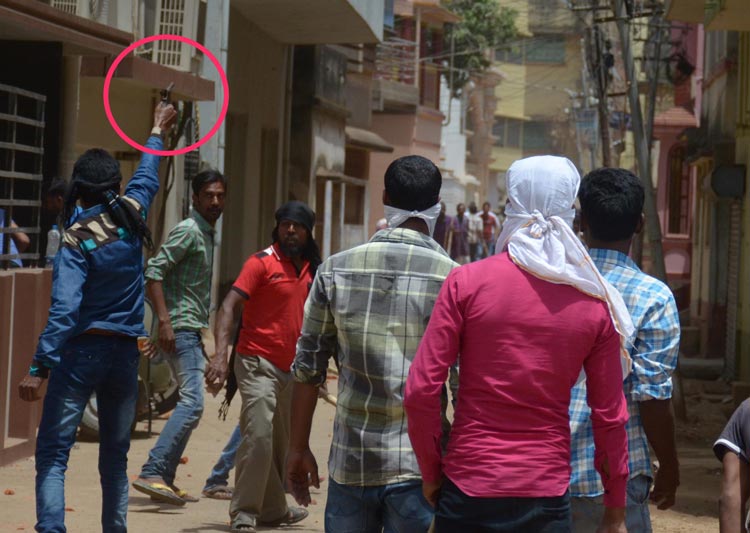 বিজেপির জেলা দফতরে তখন জেলা সভাপতি রামকৃষ্ণ রায় আলোচনা করছেন সাধারণ সম্পাদক কালোসোনা মণ্ডলের সঙ্গে। কী ভাবে প্রার্থীদের সঙ্গে নিয়ে মনোনয়নপত্র জমা দিতে যাওয়া হবে, চলছে তারই প্রস্তুতিপর্ব। বিজেপি অফিসে তখন দলীয় কর্মী-সমর্থকদের সঙ্গে অনেক মহিলাও আছেন। আমার সঙ্গে আর এক জন সাংবাদিকও ছিলেন। এই সময়েই হামলা শুরু হল। দেখলাম, কাছে দাঁড়িয়ে থাকা আর একটা ভিড় লাঠি উঁচিয়ে ইট ছুড়তে ছুড়তে বিজেপি অফিসের দিকে ছুটে আসছে। কয়েক জনের হাতে পিস্তলও রয়েছে, স্পষ্ট লক্ষ্য করলাম। পাল্টা প্রতিরোধ গড়তে বিজেপি কর্মীরাও দেখলাম ডান্ডা, মঞ্চ তৈরির কাঠের বাটাম হাতে ছুটে গেলেন হামলাকারীদের দিকে। দু’পক্ষই ইট ছুড়ছে, হাতের লাঠিরও যথেচ্ছ ব্যবহার হচ্ছে।