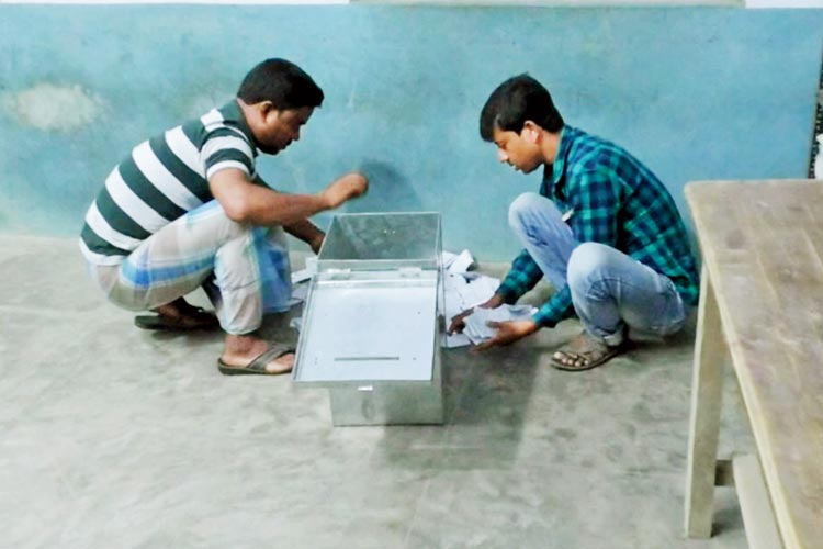 সোমবার ভোটের দিনেই বাক্স ভেঙে গোনা হচ্ছিল ব্যালট। মুর্শিদাবাদের রেজিনগরে।