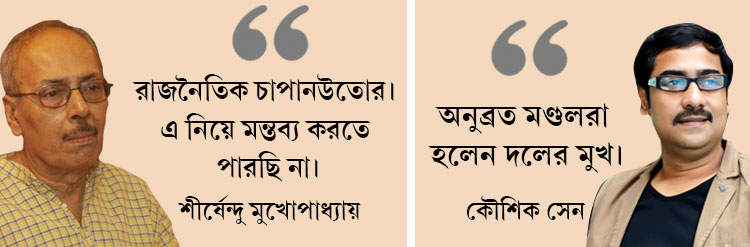 এ প্রসঙ্গে নন্দীগ্রাম আন্দোলনের কথা মনে করিয়ে দিয়েছেন অভিনেতা কৌশিক সেন। তাঁর বক্তব্য,‘‘সিঙ্গুর ও নন্দীগ্রাম আন্দোলনের সময় শঙ্খবাবু যখন রাস্তায় হেঁটেছিলেন, সে সময় বিমান বসু তাঁর বাড়ি তাঁকে বোঝাতে গিয়েছিলেন। তবে তখনও প্রকাশ্যে এ ভাবে কিছু বলা হয়নি। এটা কিন্তু তৃণমূলের আমলেই হচ্ছে।’’ তাঁর সাফ কথা, ‘‘অনুব্রত মণ্ডলরা হলেন দলের মুখ। এখন যদি তৃণমূল নেতৃত্ব বলেন, এটা ওঁর ব্যক্তিগত মত, তাহলেও কিন্তু অনুব্রতকে আর আলাদা করে রাখা যাবে না।’’ তবে এ বিষয়ে কোনও মন্তব্য করতে চাইছেন না সাহিত্যিক শীর্ষেন্দু মুখোপাধ্যায়। তাঁর সংক্ষিপ্ত প্রতিক্রিয়া, ‘‘এটা রাজনৈতিক চাপানউতোর। আমি যেহেতু রাজনীতি করিনা, তাই এ নিয়ে মন্তব্য করতে পারছি না।’’