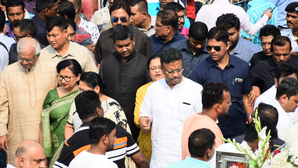 কেওড়াতলায় গান স্যালুটের পর কিছুক্ষণের অপেক্ষা। তার পর ধীরে ধীরে অন্ত্যেষ্টিক্রিয়া শুরু। এক সময় শেষও হয়ে গেল তা। নায়কোচিত গ্ল্যামার আর বিতর্কের ধূসরতা, এ দিন দুইই মুছে গেল চোখের জলে, বিষাদে। ঠিক যেমন ভাবে ‘দেহ পট সনে নট’ মিলিয়ে যায়, সে ভাবেই।