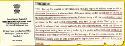 এসএফআইও-রিপোর্টের ইঙ্গিত, সারদা কেলেঙ্কারিতে জড়িত সমাজের ‘প্রভাবশালী’ অংশকে বাঁচাতেই বিধাননগর কমিশনারেটের পুলিশ তদন্তে সহায়তা করেনি। রিপোর্টে জানানো হয়েছে, পুলিশের কাছ থেকে প্রয়োজনীয় তথ্য বা নথি না পাওয়ায় সাকুল্যে সারদার সাতটি সংস্থার ডিরেক্টরদের অভিযুক্ত হিসেবে চিহ্নিত করে ক্ষান্ত দিতে হয়েছে। কারণ, তদন্ত চলাকালীন শুধু তাঁদেরই বিরুদ্ধে কিছু তথ্য এসএফআইও-র হাতে এসেছে। অর্র্থাৎ, কেলেঙ্কারিতে আরও যাঁরা জড়িত বলে প্রাথমিক ভাবে সন্দেহ করা হয়েছিল, তথ্য-প্রমাণের অভাবেই তাঁরা রেহাই পেয়ে গিয়েছেন!