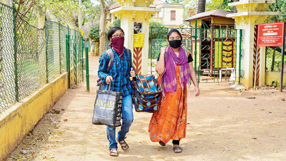 গোলমালের আতঙ্কে হস্টেল ছাড়েন অনেকে। ফাইল চিত্র।