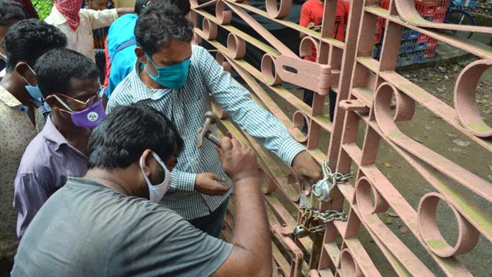 ১৭ অগস্ট, তালা ভাঙা হচ্ছে শান্তিনিকেতনে। ফাইল চিত্র।