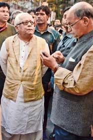 প্রায় একই দাবি তুলেছেন বিরোধী দলনেতা সূর্যকান্ত মিশ্রও। প্রধানমন্ত্রীর দফতরে চিঠি পাঠিয়ে ২১-২৩ ডিসেম্বরের মধ্যে তাঁর সঙ্গে সাক্ষাতের সময় চেয়েছেন সূর্যবাবু। সেই সূত্রেই তিনি বলেছেন, “বিজেপি-র নেতা-মন্ত্রীরা সারদা নিয়ে যাঁদের বিরুদ্ধে আঙুল তুলছেন, তাঁরা কিন্তু সবাই ঘুরে বেড়াচ্ছেন। প্রধানমন্ত্রী হওয়ার আগে মোদী প্রতিশ্রুতি দিয়েছিলেন, সারদায় দোষীদের গ্রেফতার করা হবে। ছ’মাস কেটে গেলেও রাজ্যের মুখ্যমন্ত্রীকে জেরা করা হল না! এক জন মন্ত্রীকেও গ্রেফতার করা হল না!” বাম পরিষদীয় দলের পক্ষ থেকে মোদীর সঙ্গে দেখা করে সেই প্রতিশ্রুতির কথাই তাঁকে মনে করিয়ে দিতে চান সূর্যবাবু। কলকাতায় যখন বিমানবাবু-সূর্যবাবুরা এই কথা বলছেন, দিল্লিতে তখন দলের রাজ্যসভার সাংসদ ঋতব্রত বন্দ্যোপাধ্যায়ের প্রশ্নের লিখিত উত্তরে কেন্দ্রীয় অর্থমন্ত্রী অরুণ জেটলি এ দিন জানান, গত তিন বছরে পশ্চিমবঙ্গে (অর্থাৎ তৃণমূল জমানায়) সারদার মতো প্রায় ২০০টি সংস্থা কারবার চালিয়েছে। এদের বিরুদ্ধে আসা অভিযোগ রিজার্ভ ব্যাঙ্ক পাঠিয়ে দিয়েছে সেবি এবং রাজ্য সরকারের কাছেও। কিছু ক্ষেত্রে সম্পত্তি বাজেয়াপ্ত করার নির্দেশ জারি হয়েছে।