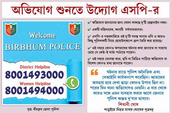 আর গা উজিয়ে পুলিশের কাছে ছুটতে হবে না। তৎক্ষণাৎ যোগাযোগ করুন বীরভূম জেলা পুলিশের নতুন হোয়াটস্অ্যাপ গ্রুপ নম্বরে। বিপদ থেকে রক্ষা করতে এ বার পুলিশই পৌঁছে যাবে আপনার কাছে!
