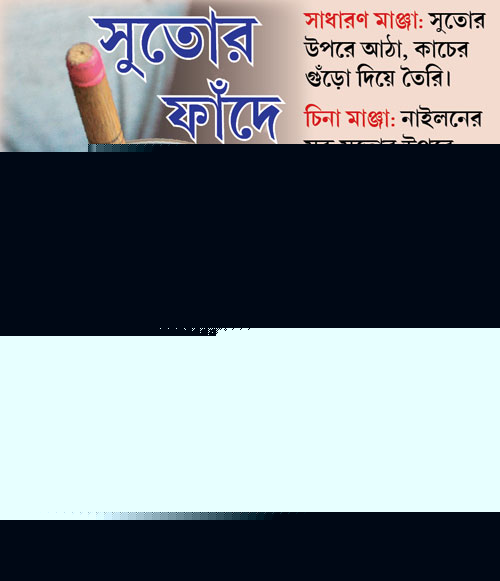 ঘুড়ি বিক্রেতাদের অনেকের বক্তব্য, এই মাঞ্জাসুতো অনেক বেশি টেঁকসই। তার উপরে আবার দামও কম। তাই এই সুতোর চাহিদা বেশি। তবে এই সুতো যে বিপজ্জনক, তা মেনে নিচ্ছেন বিক্রেতারাই। বলছেন, শুধু সামান্য অসতর্ক হলে ঘুড়িপ্রেমীরা নিজেরাই আঙুল কেটে আহত হতে পারেন। কিন্তু সে সব কথায় কান দিচ্ছে কে! দমদমের ঘুড়ি ব্যবসায়ী গোপাল সমাদ্দারের কথায়, ‘‘মানুষ তো এখন এই সুতোই চাইছে। বিক্রিও হচ্ছে হু হু করে।’’