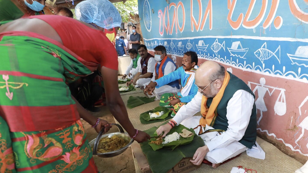 বঙ্গ সফরে এসে মধ্যাহ্নভোজ সারছেন অমিত শাহ।