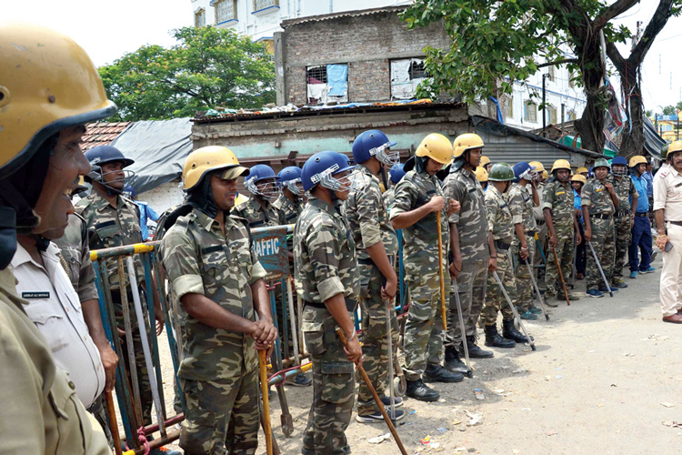 পুলিশ সুপারের অফিসের সামনে নিরাপত্তা।