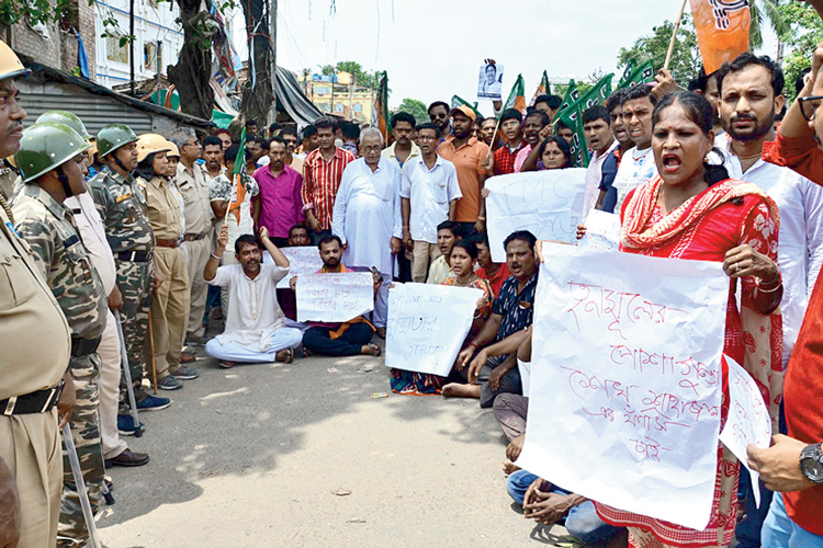 এ দিন হাসপাতালেও পুলিশের সঙ্গে একপ্রস্থ কথা কাটাকাটি বাধে বিজেপি নেতা-নেত্রীদের। অজ্ঞাতপরিচয় এক যুবকের দেহ এসেছিল হাসপাতালে। তাঁদের দলের কর্মী দেবদাস মণ্ডল এখনও নিখোঁজ বলে দাবি করে বিজেপি সাংসদ লকেট চট্টোপাধ্যায়কে বলতে শোনা যায়, ‘‘যে অজ্ঞাতপরিচয়ের দেহ আনা হয়েছে, তা আমাদের দেখতে দেওয়া হোক।’’ পুলিশ অবশ্য তাতে আপত্তি করেনি। তবে তারা জানায়, মিনাখাঁয় একজন বিষ খেয়ে আত্মঘাতী হয়েছেন। এ দেহ তাঁরই। খানিকক্ষণ বাদানুবাদ চলার পরে লকেট অবশ্য শান্ত হন। এ দিন সকালে হাসপাতাল থেকে মিছিল করে বিজেপি নেতা-কর্মীরা যান বসিরহাট পুলিশ সুপারের অফিসে। সেখানে ঘণ্টাখানেক বিক্ষোভ চলে। সাজাহান-সহ বাকি অভিযুক্তদের গ্রেফতারের দাবিতে স্মারকলিপি দেওয়া হয়। পুলিশ সুপার অফিসে না থাকায় স্মারকলিপি গ্রহণ করেন অতিরিক্ত পুলিশ সুপার চন্দন ঘোষ।