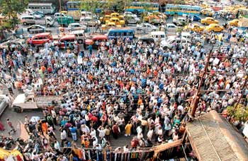 মঙ্গলবার কলেজ স্কোয়ার থেকে ধর্মতলা পর্যন্ত বিজেপির মিছিলের ছবিটি তুলেছেন শুভাশিস ভট্টাচার্য।