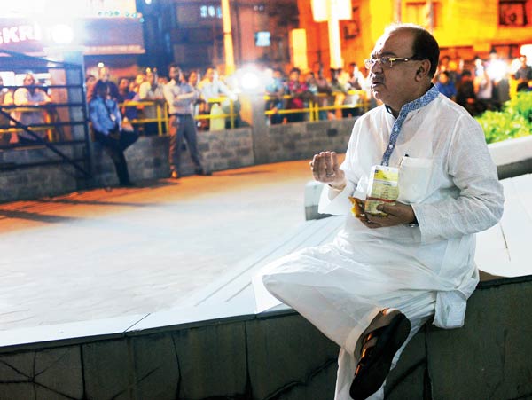 খোশমেজাজে: ওপরে চলছে দিদির সাক্ষাৎকার। এবিপি আনন্দের দফতরের নীচে তেলেভাজা মুড়ি খেতে খেতে অপেক্ষা মেয়র শোভন চট্টোপাধ্যায়ের। বৃহস্পতিবার। নিজস্ব চিত্র
