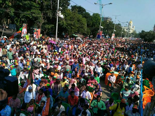 সভা শুরু হওয়ার আগেই ভিড়ে ঠাসা বিজেপির সমাবেশস্থল।