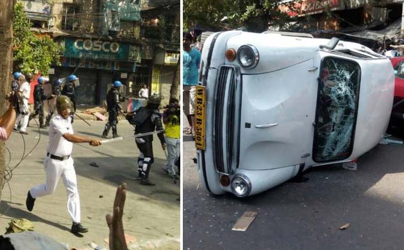 • বি বি গাঙ্গুলি স্ট্রিটে পুলিশের গাড়িতে আগুন। বহু গাড়ি ভাঙচুর।