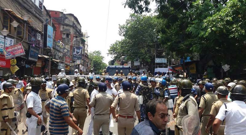 বিজেপি-র মিছিল আটকাতে ব্যাপক পুলিশি বন্দোবস্ত।