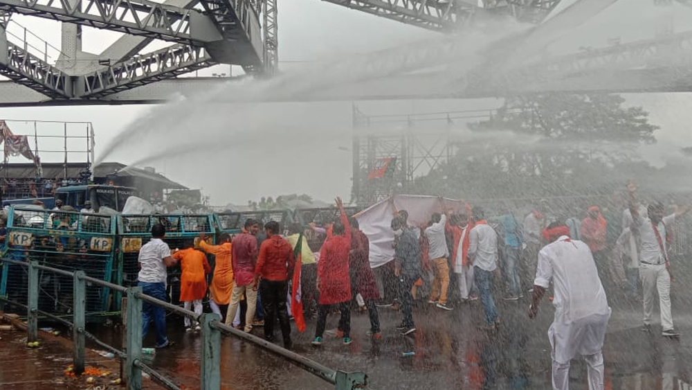 • সদর দফতর থেকে হাওড়া ব্রিজে ওঠার মুখে পৌঁছল বিজেপির মিছিল, ব্যারিকেড ভেঙে ব্রিজে ওঠার চেষ্টা। জলকামান চালিয়ে বিক্ষোভকারীদের হঠানোর চেষ্টা পুলিশের।