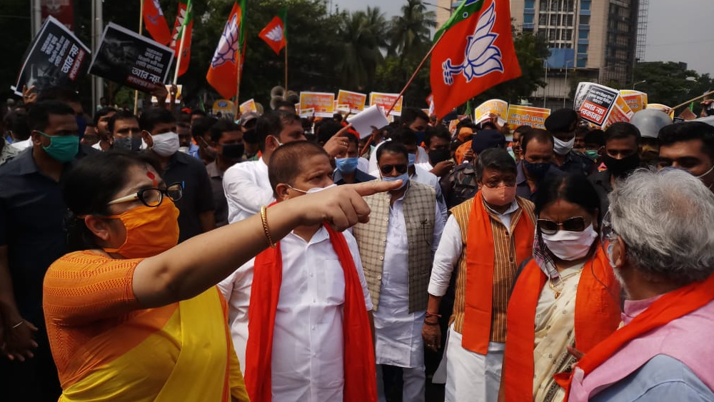 • অর্জুন সিংহ এবং লকেট চট্টোপাধ্যায় এর নেতৃত্বে হেস্টিংস মোড়ে অবস্থান শুরু হল বিজেপির। তাতে যোগ দিলেন ভারতী ঘোষ এবং কৈলাস বিজয়বর্গীয়।