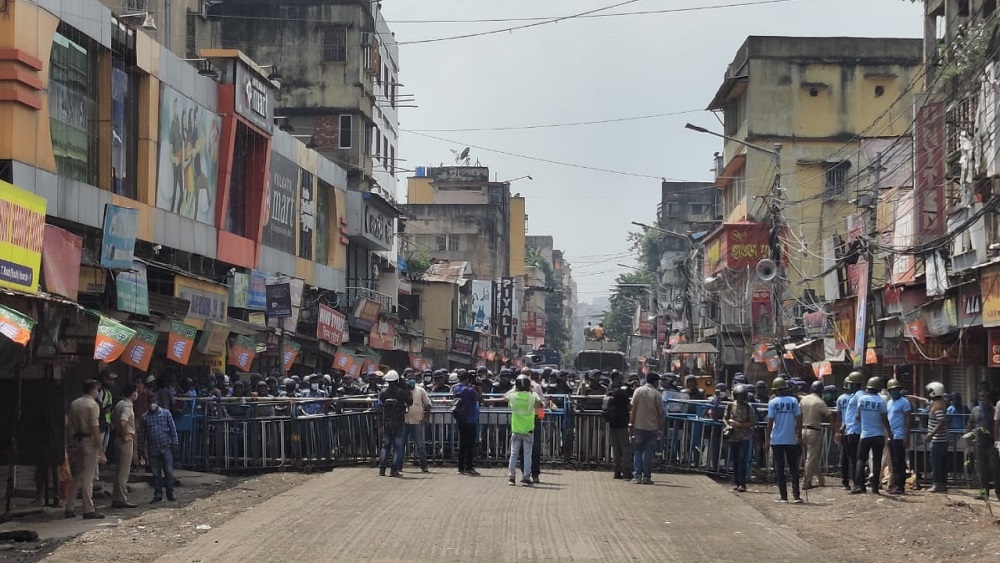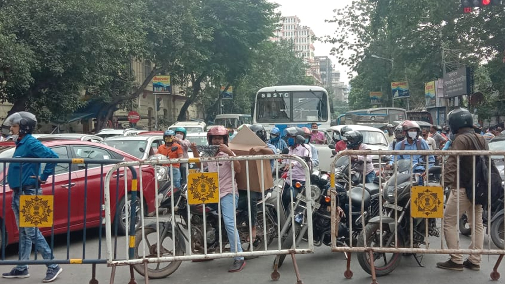 স্ট্র্যান্ড রোডে ব্যারিকেড পুলিশের।