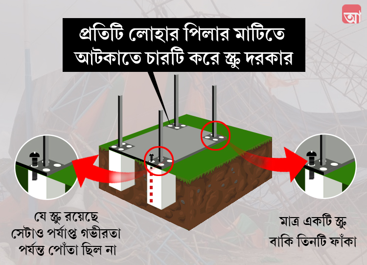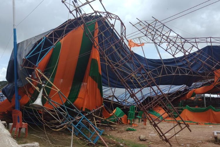 মেদিনীপুরে সোমবার প্রধানমন্ত্রীর সভার শেষে ভেঙে পড়ে দ্বিতীয় কাঠামোটিও। ছবি: দেবরাজ ঘোষ।