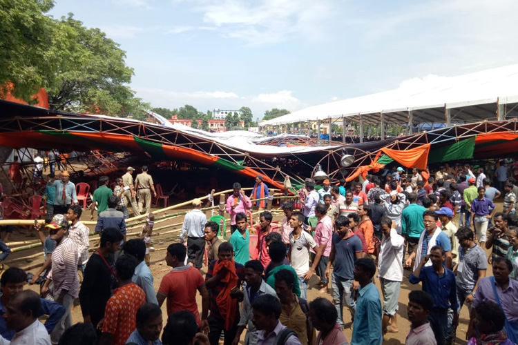 কলেজ গ্রাউন্ডে প্রধানমন্ত্রীর সভায় ভেঙে পড়া ছাউনি। ফাইল চিত্র।
