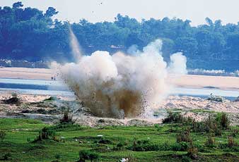 এ ভাবেই দামোদর তীরে নিষ্ক্রিয় করা হয় মিনি গ্রেনেডগুলি।—ফাইল চিত্র।