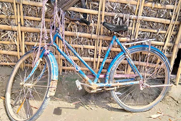 এই সাইকেলে করেই প্রতিমার দেহ ঘাটে নিয়ে যাওয়া হয়। —নিজস্ব চিত্র।