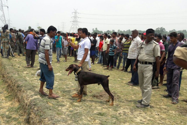 স্নিফার ডগ নিয়ে এসে তদন্ত চালাচ্ছে পুলিশ। নিজস্ব চিত্র।